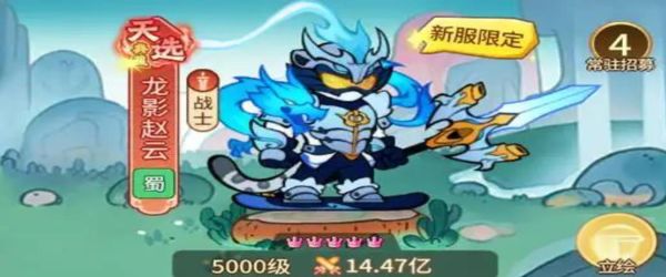 3、龍影趙云為天選品級新服限定,戰(zhàn)力遠(yuǎn)超普通趙云,普攻是范圍傷害且概率附加4秒傷害加深。