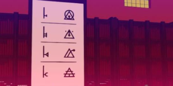 2、到下一層找到帶位置標(biāo)記的書架,以此掌握機(jī)械的使用方法,啟動(dòng)機(jī)械后墻上壁畫會發(fā)光,交互壁畫記錄種族字符,之后會得到一張帶刀叉符號的紙。