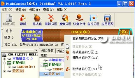 而要在Windows 7下隱藏硬盤分區(qū),可借助DiskGenius分區(qū)軟件,運行DiskGenius軟件(下載地址:http://m.lz0519.com/soft/30988.html),軟件會自動檢測硬盤分區(qū)情況,其中“分區(qū)(2)”就是硬盤的EISA分區(qū),右鍵單擊“分區(qū)(2)”標簽,選擇“隱藏當前分區(qū)”(如圖),點擊“應(yīng)用更改”圖標,重啟Windows 7后,硬盤EISA分區(qū)不見了,說明已經(jīng)被隱藏起來了。