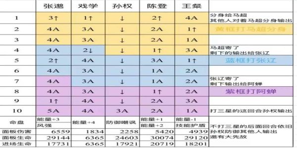 3、具體戰(zhàn)斗按回合執(zhí)行精準(zhǔn)操作,不同回合釋放對(duì)應(yīng)技能,追求三星需把握孫權(quán)輸出時(shí)機(jī),若目標(biāo)為二星,可調(diào)整陣容,整個(gè)過程需兼顧生存與輸出,才能順利通關(guān)。