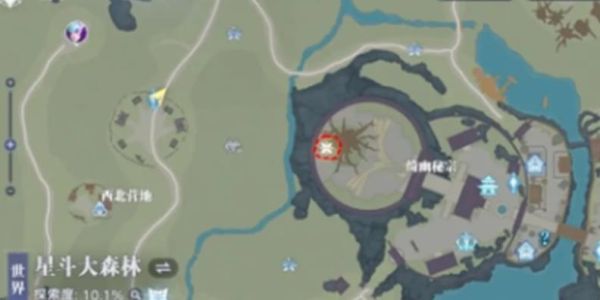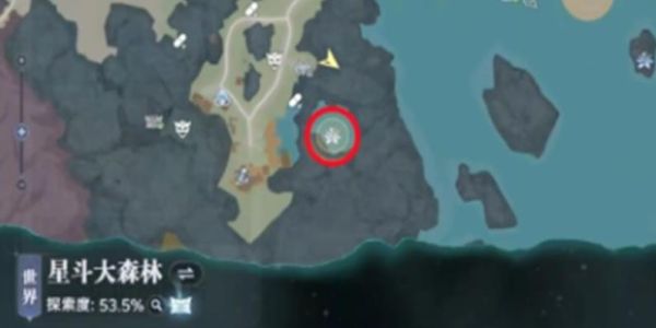 1、星斗大森林邊緣懸崖頂端有株散發(fā)幽藍光芒的仙草,其位置有明顯紅圈標記,水域中央也有一處仙草生長點,同樣以紅圈標注,采集后服用可獲得基礎(chǔ)屬性加成效果。