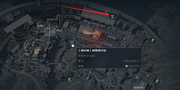 1、大壩地圖開局后,玩家需先在地圖中找到破壁者行動任務(wù)接取點,前往指定位置與任務(wù)電腦互動接取任務(wù),之后前往行政區(qū)上方撤離點,在其左側(cè)尋找通風(fēng)管道入口。