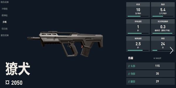 1、獠犬售價(jià)2050價(jià)格實(shí)惠,擁有24發(fā)彈匣和72發(fā)備彈,每秒10發(fā)射速在中近距離能快速傾瀉火力,5點(diǎn)4米每秒移動(dòng)速度和1秒裝備時(shí)間,可讓玩家靈活投入戰(zhàn)斗迅速制敵。