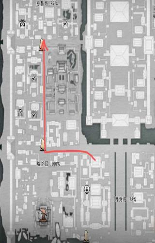 1、玩家需前往開封府趙二所在屋頂靜候,將時間調整至子時后點擊竊聽,竊聽結束切勿使用地圖傳送,直接跳出墻外,沿著特定路線前行,途中經(jīng)過兩個界碑后走大路。