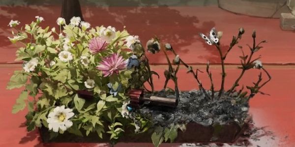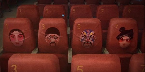 1、初始場景中,左邊座椅有密碼盒,右邊座椅有臉譜圖案,往右走可見可旋轉圖案,滅火箱密碼7153對應臉譜,打開得滅火器,撲滅舞臺火焰后在假花堆找紙傘,點擊蝴蝶得玉蝴蝶。