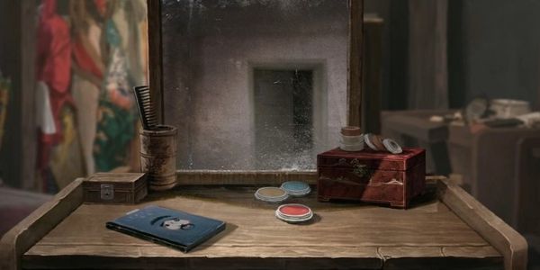 3、化妝臺得油彩,翻書獲信息和開鑼大吉字條,用神龕旁電閘,紙傘推上開關通電,電子屏幕顯喜奠喪婚吉嫁,回左座盒子輸喜字得化妝筆,沾顏料完成后門一筆畫進入服裝間。
