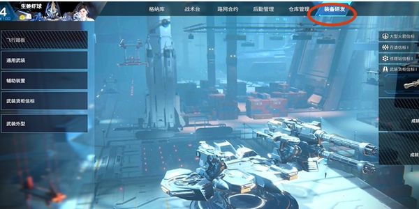 2、工程區(qū)和研發(fā)室是裝備研發(fā)的關(guān)鍵區(qū)域,研發(fā)室內(nèi)終端可跳轉(zhuǎn)至裝備研發(fā)界面,玩家能開(kāi)發(fā)新的機(jī)甲部件和武器系統(tǒng),突出科技感和研發(fā)要素,提供打造專屬機(jī)甲的平臺(tái)。