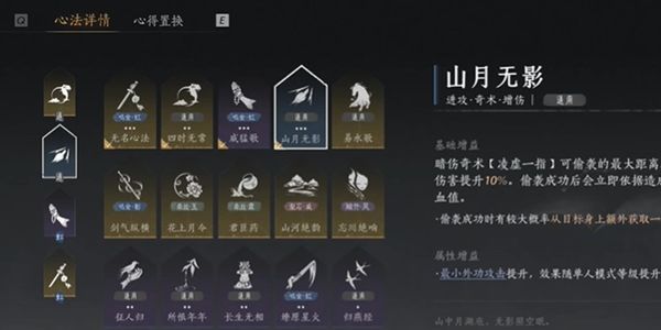 1、用藍(lán)色品質(zhì)的山月無影心法提升效率突破到三重效果更佳,搭配靈犀一指能在蓮花禪院據(jù)點快速刷怪,全程隱身偷襲,三重效果每次偷襲有概率獲雙倍掉落,增加金色狗糧獲取量。