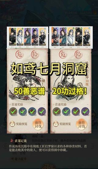 3、兩關(guān)均需特定密探,通關(guān)可獲得豐厚獎(jiǎng)勵(lì),如歷險(xiǎn)結(jié)算額外20%晶洞等,按上述策略操作,能提升通關(guān)效率,獲取洞窟珍藏。