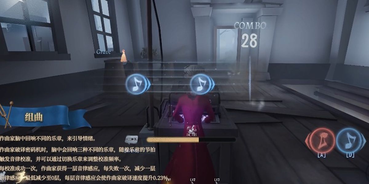 2、組曲技能在破譯密碼機(jī)時(shí)觸發(fā)音律校準(zhǔn),成功可提升破譯速度并短暫感知監(jiān)管者位置,連續(xù)三次失敗會(huì)暴露自身位置給監(jiān)管者,使用時(shí)需權(quán)衡風(fēng)險(xiǎn)與收益。
