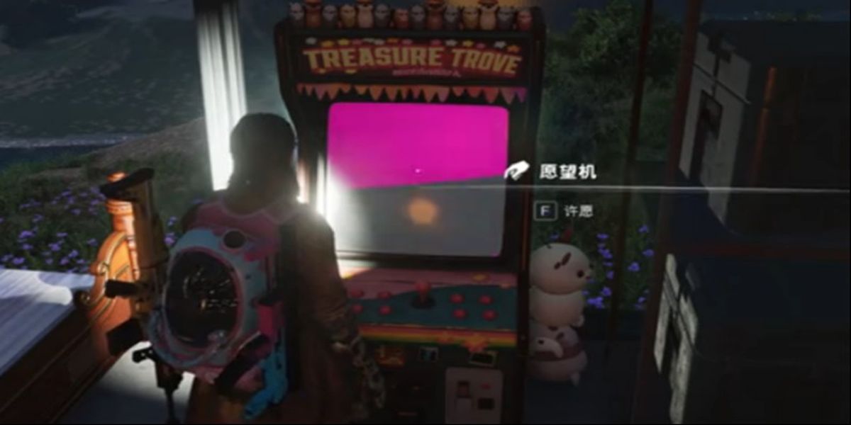 1、前往中途鎮(zhèn),在廢棄小鎮(zhèn)左前方找到白色倉庫,進(jìn)入后與無法運(yùn)作的許愿機(jī)互動(dòng)觸發(fā)劇情對(duì)話,得知機(jī)器斷電需恢復(fù)電力才能使用。