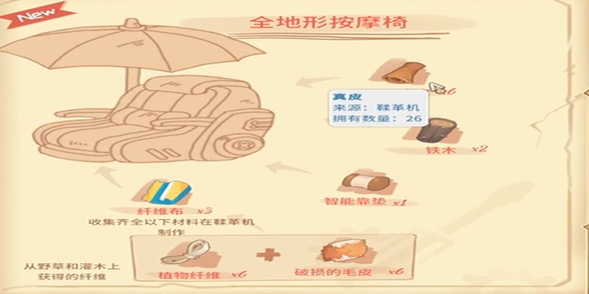 3、游戲中曾提及全地形按摩椅的制作材料,包括鐵木、智能靠墊、纖維布等,但獲取方式仍以在好兄弟家具店購買為主,滿足玩家對(duì)該家具的需求。