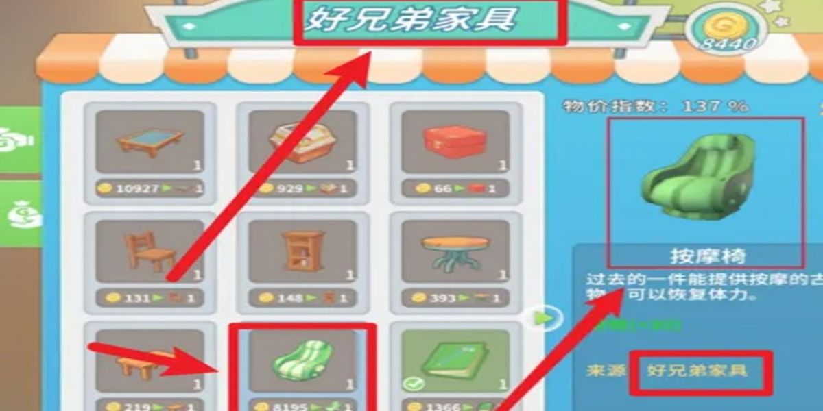 1、按摩椅可在好兄弟家具店直接購買,售價(jià)8195金幣,雖價(jià)格較高,但實(shí)用價(jià)值高,能有效恢復(fù)體力,提升整體體驗(yàn),適合玩家投資。