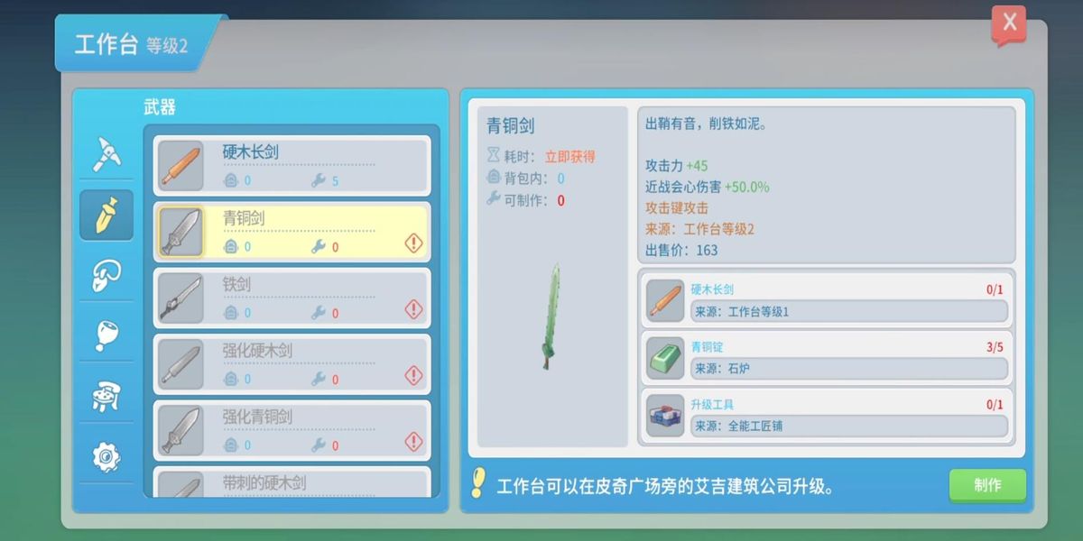 3、每次升級(jí)后,工作臺(tái)會(huì)解鎖新的制作配方和功能,幫助工坊主打造更高級(jí)的物品,升級(jí)主要依靠收集材料和金幣,按流程操作就能輕松提升工坊的制作能力。