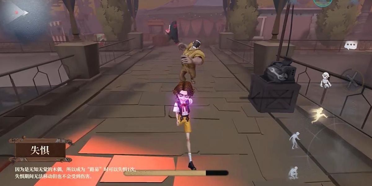 2、失懼是路易形態(tài)下的特殊狀態(tài),進入后木偶師變成無法移動的傀儡,但不會受任何傷害,適合拖延監(jiān)管者追擊節(jié)奏,為隊友破譯密碼機爭取時間。