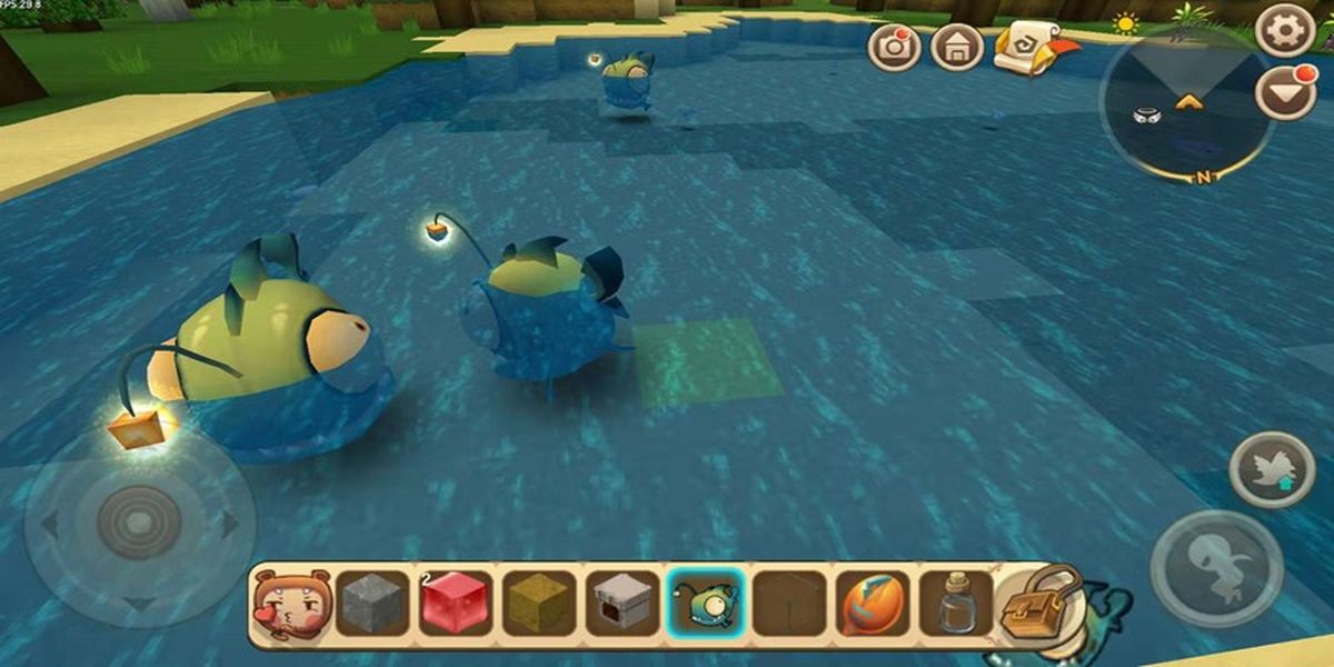 3、準(zhǔn)備1個(gè)熒光晶體,先制作捕魚網(wǎng),用2根小木棍1個(gè)精鐵錠和3根絲線合成,攜帶捕魚網(wǎng)到深海擊敗燈籠魚可獲取,也可圈養(yǎng)繁殖穩(wěn)定獲取。