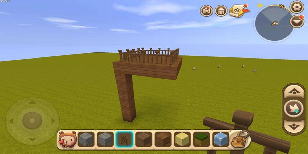 1、搭建基礎(chǔ)平臺,用柱子撐起高度超過8個方塊的底座,頂部鋪設5x5的落葉松木地板,作為乘坐區(qū)域,四周加裝木柵欄起到防護作用,確保結(jié)構(gòu)穩(wěn)固。