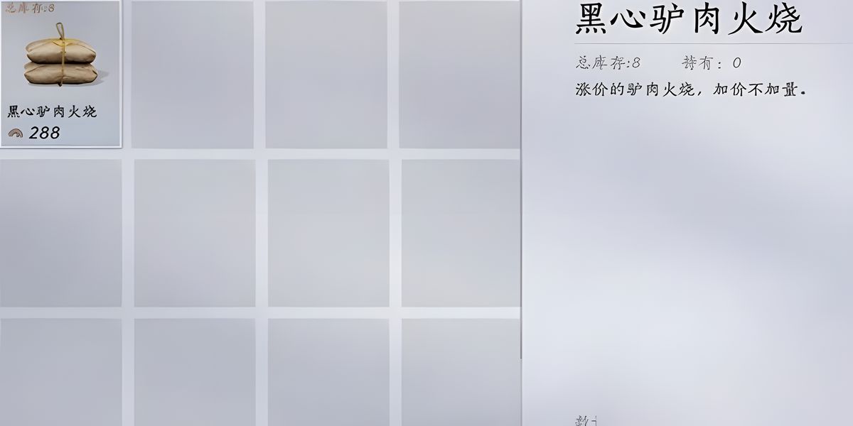 5、完成夢境探索后返回驢肉火燒店,按G鍵偷聽到老板關(guān)于黑心驢肉火燒的秘密,花費288文購買并食用后會身體不適。