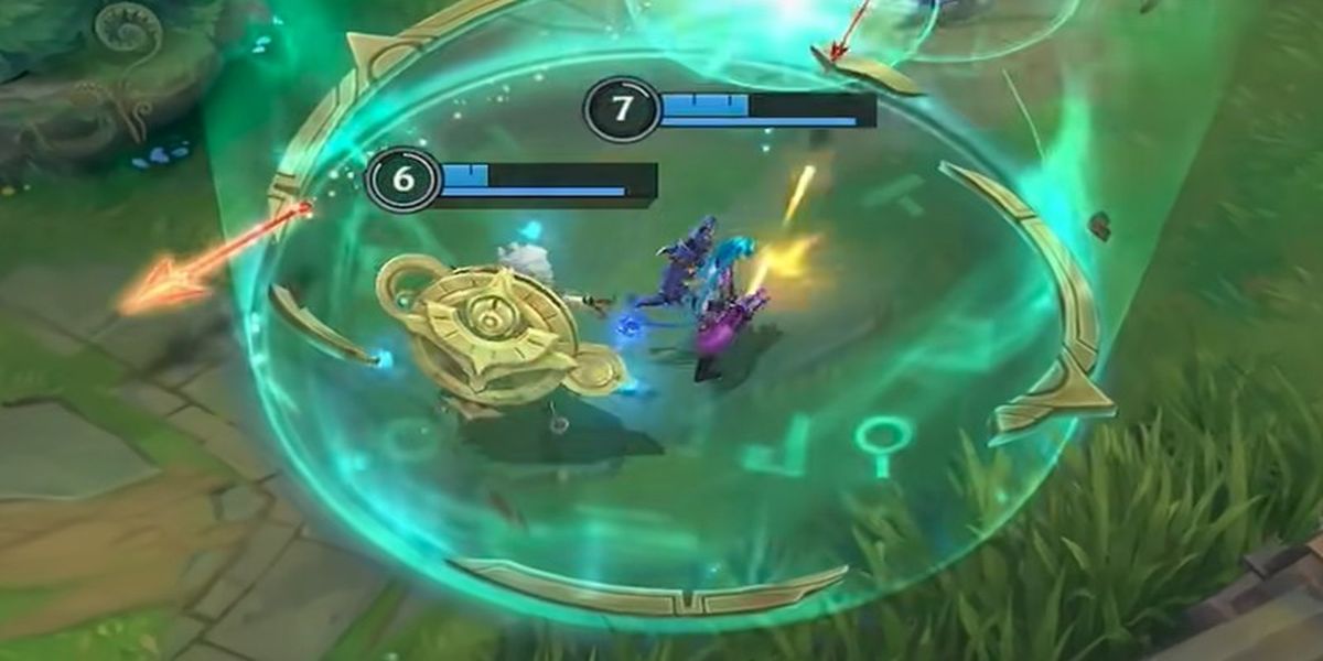 3、E技能時間扭曲,可為友方加移動速度,或降低敵方移動速度,在追擊敵人、保護隊友撤退時都很實用,是基蘭作為輔助的核心技能之一,增強團隊機動性或限制敵方。