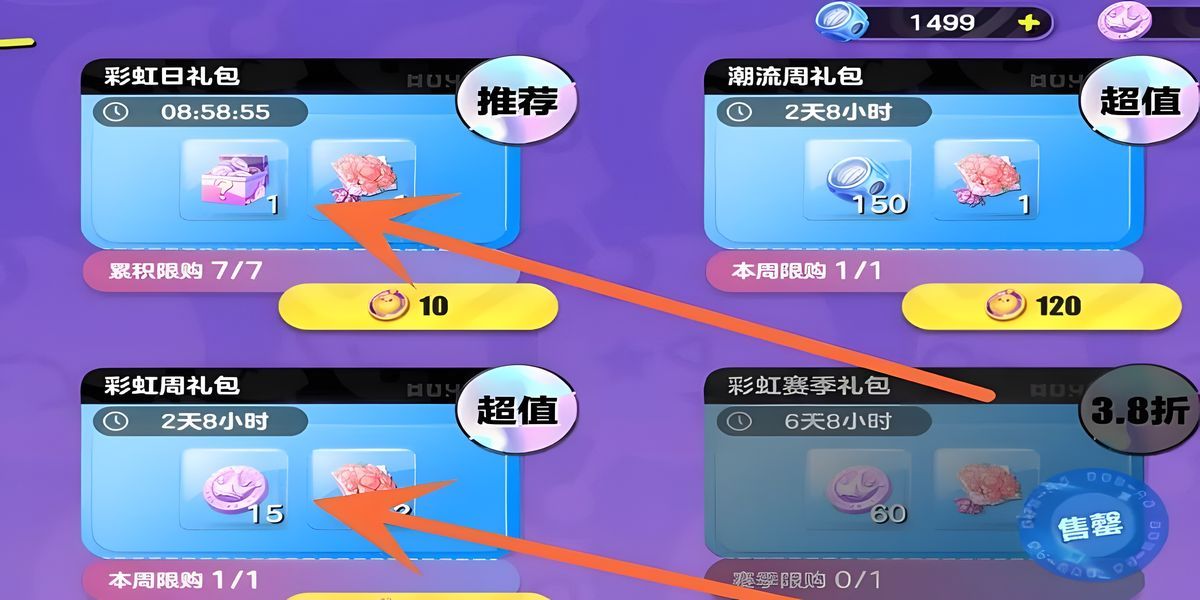 5、若想快速獲得大量彩虹幣,可直接在游戲商城購(gòu)買,商城會(huì)不定期推出優(yōu)惠禮包,購(gòu)買后能立即獲得相應(yīng)數(shù)量的彩虹幣,滿足急需需求。