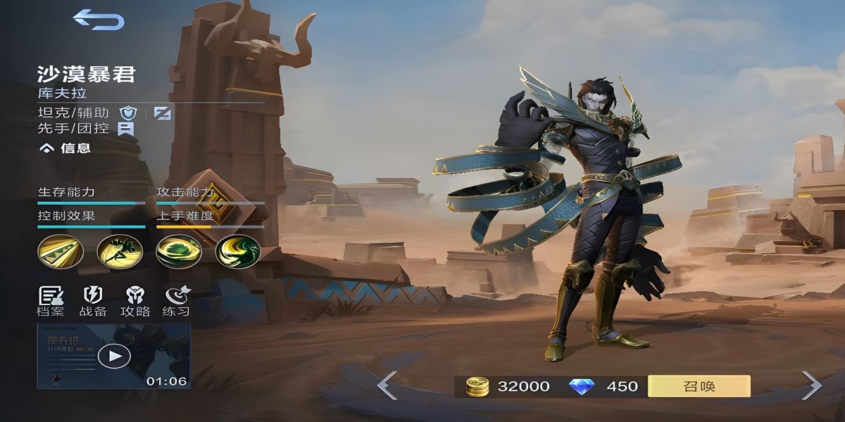決勝巔峰中的庫(kù)夫拉是一位定位坦克兼輔助的強(qiáng)力英雄,有著沙漠暴君之稱,以高防御和出色控制能力聞名,他既能承受大量傷害,又能通過技能組合打出良好控制效果,是團(tuán)隊(duì)不可或缺的前排角色,其玩法圍繞技能連招展開,合理運(yùn)用可在團(tuán)戰(zhàn)中發(fā)揮關(guān)鍵作用,以下詳細(xì)解析其技能與連招技巧。