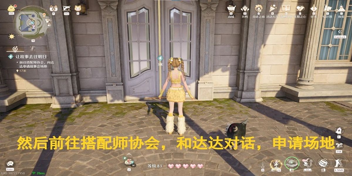 2、完成場地申請后,找到瑪娜對話請其制作海報并進行搭配展示,之后在4點到22點期間,于搭配師協(xié)會廣場主持故事會,進入劇情動畫后即可完成任務。