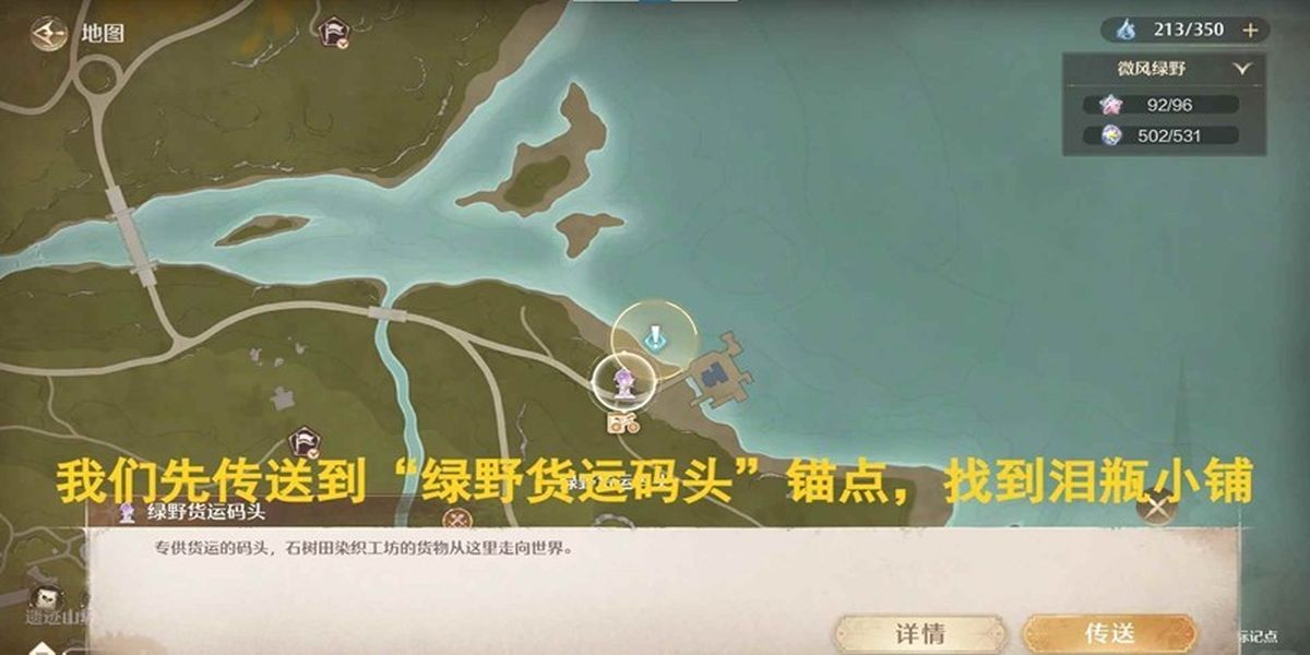1、傳送到綠野貨運(yùn)碼頭錨點(diǎn),找到淚瓶小鋪,進(jìn)入鋪內(nèi)和呱呱對話接取任務(wù),這是任務(wù)開啟的首要步驟,需準(zhǔn)確找到對應(yīng)地點(diǎn)和NPC具體位置。