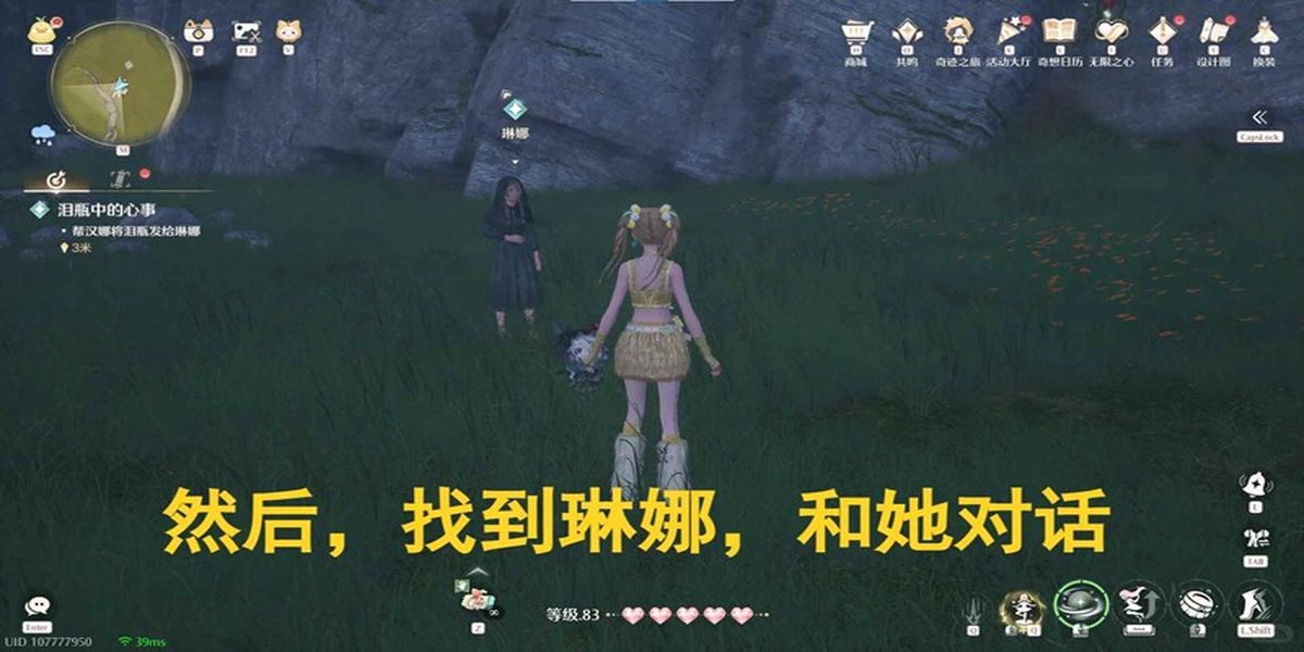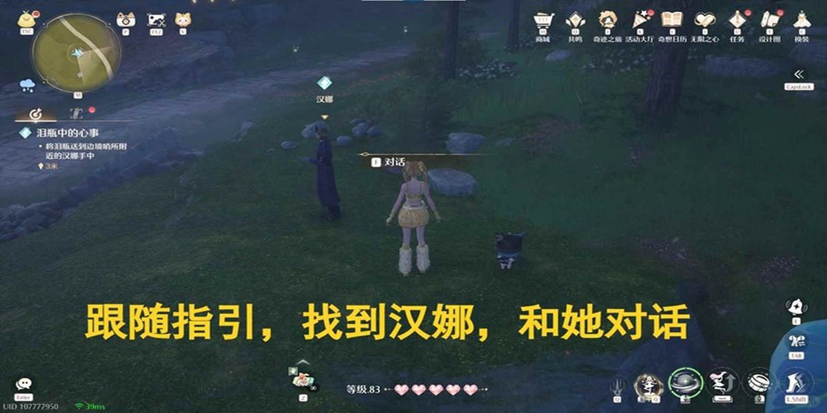 2、傳送到菲洛米亞女王行宮遺跡西側(cè)樹林錨點(diǎn),跟隨指引找到漢娜并對話,接著到帳篷附近找到琳娜,與其對話并進(jìn)行搭配展示,按順序穩(wěn)步推進(jìn)任務(wù)進(jìn)度。