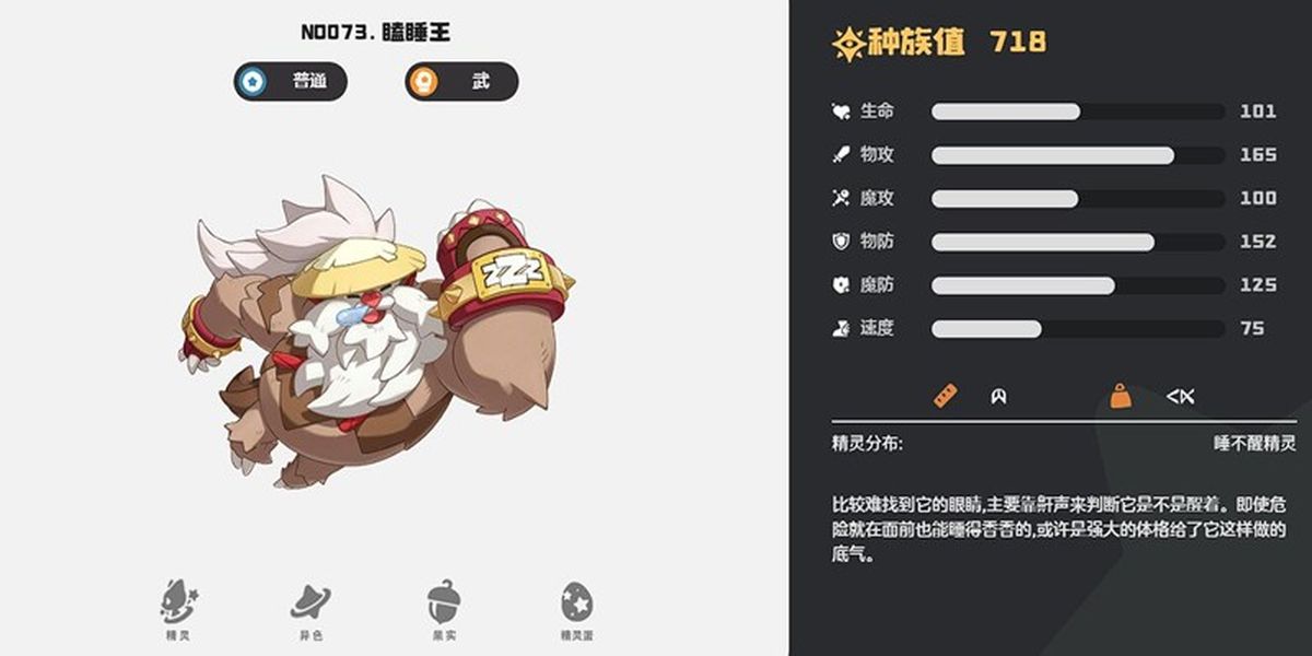 1、瞌睡王由白發(fā)懶人進(jìn)化,維蘇威火山口可捕,特性慢熱型,需隊(duì)友擊敗敵人或閃避充能,滿能提物攻與暴擊,適合殘局收割,崩山擊對(duì)殘血加50%傷害,配狂暴連打清場快。