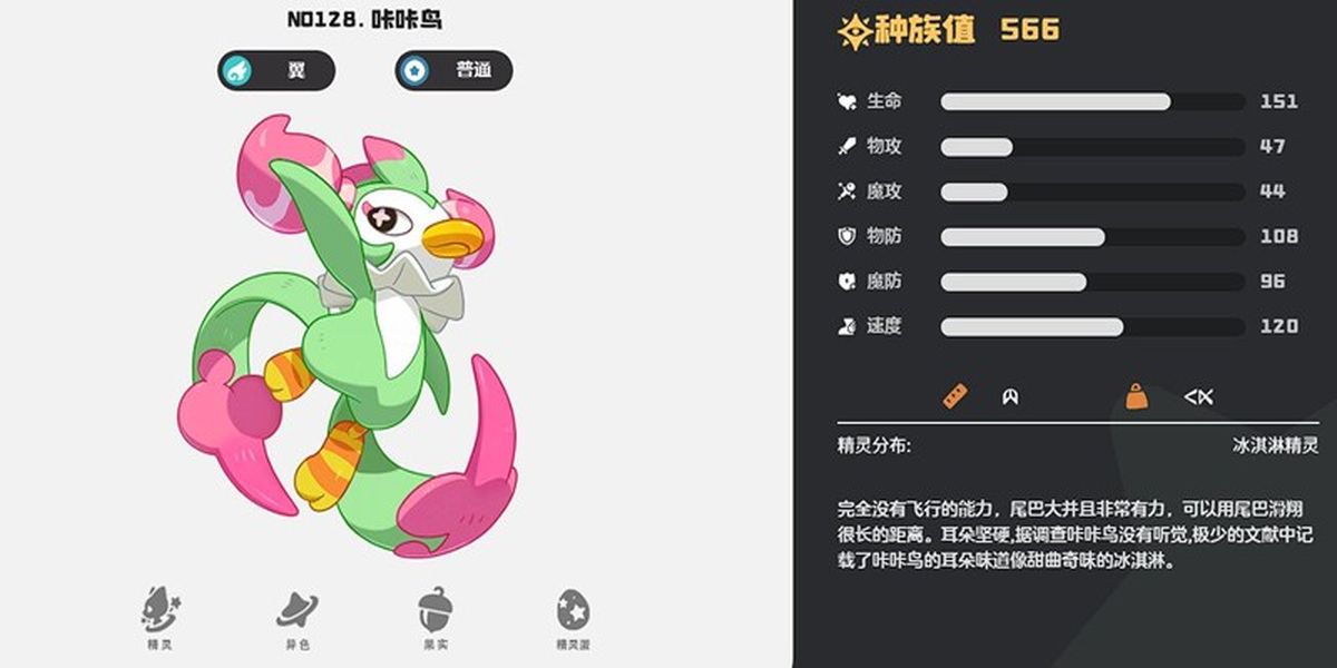 2、咔咔鳥是新手前期過渡精靈,進(jìn)化鏈為咔咔羽毛到咔咔雀,種族值566,擅群體攻擊,技能亂沖單回合多連擊,防御力低需護(hù)盾輔助,前期推圖和日常好用,后期輸出有限。