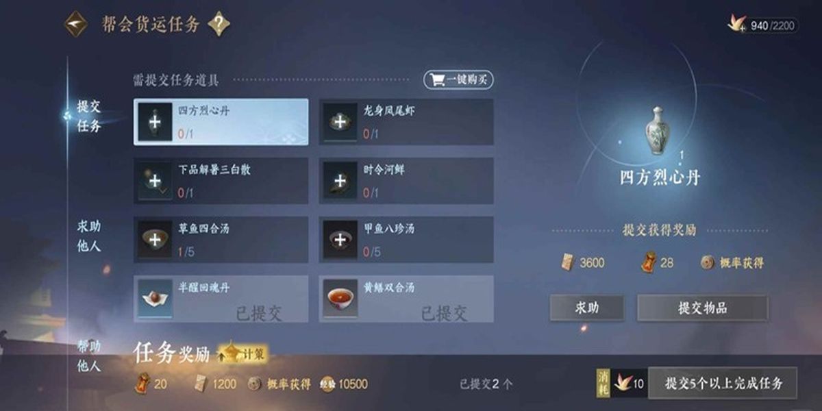 4、每周必買物品包括杭州藥鋪的30瓶上品藥、茶葉鋪的雨前龍井、包子鋪的蓮蓉包等,釣客處買中級魚餌和魚王餌,汴京學(xué)者處買青銅碎片,還可按需兌換琳瑯商店等的物品。