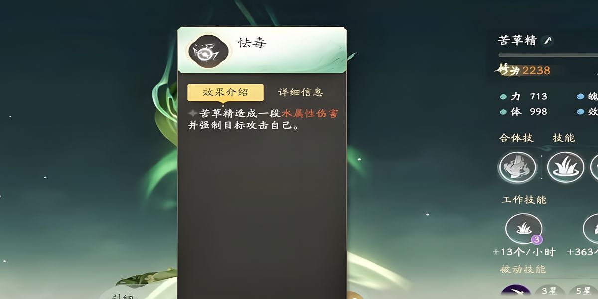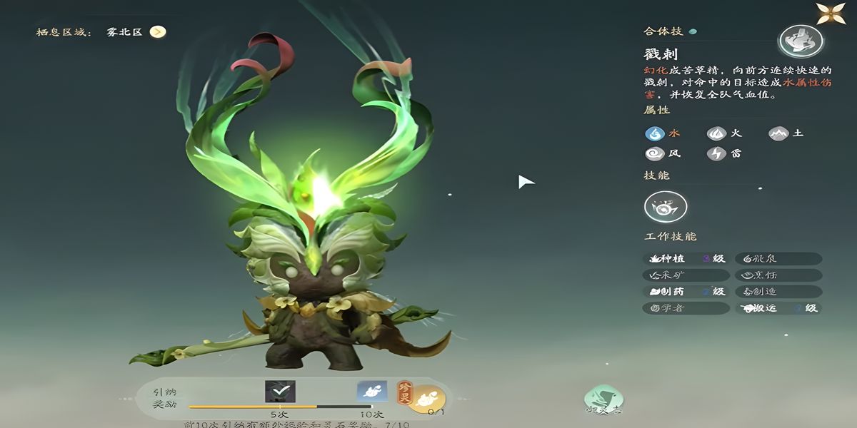 2、玩家等級達(dá)15級可捕捉苦草精作伙伴,捕捉時控其血量在1000左右,用藍(lán)葫蘆成功率較高,苦草精有強大群體治療技能,挑戰(zhàn)高難度副本時提供穩(wěn)定續(xù)航,提升團隊生存力。
