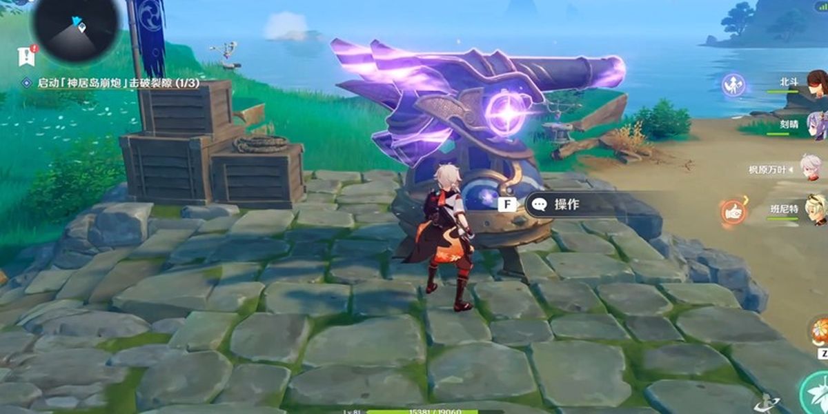 2、與澤維爾對(duì)話后,去三指定地點(diǎn)觀察,返回再對(duì)話,啟動(dòng)神居島崩炮擊破縫隙,地圖標(biāo)大炮位,瞄準(zhǔn)秘境轟擊,中則閃光否則調(diào)角度。