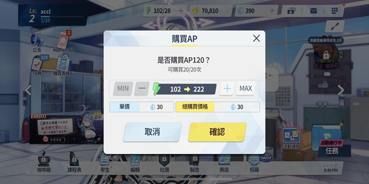 3、可使用青輝石兌換體力,點(diǎn)擊體力按鈕花費(fèi)一定數(shù)量青輝石即可補(bǔ)充,青輝石珍貴,主要用于角色招募和培養(yǎng),建議優(yōu)先保留用于這些重要用途。