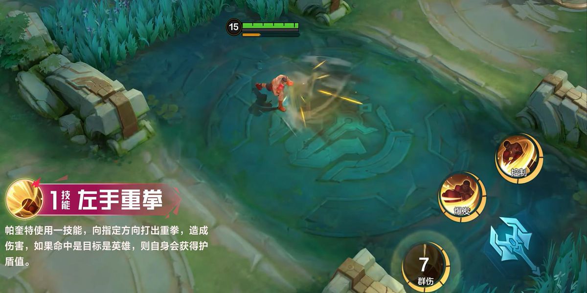 2、一技能是左手重拳,向指定方向揮出重拳對路徑上敵人造成傷害,若命中敵人下一個普攻會變成強(qiáng)力上勾拳造成更高傷害,增強(qiáng)了輸出能力。
