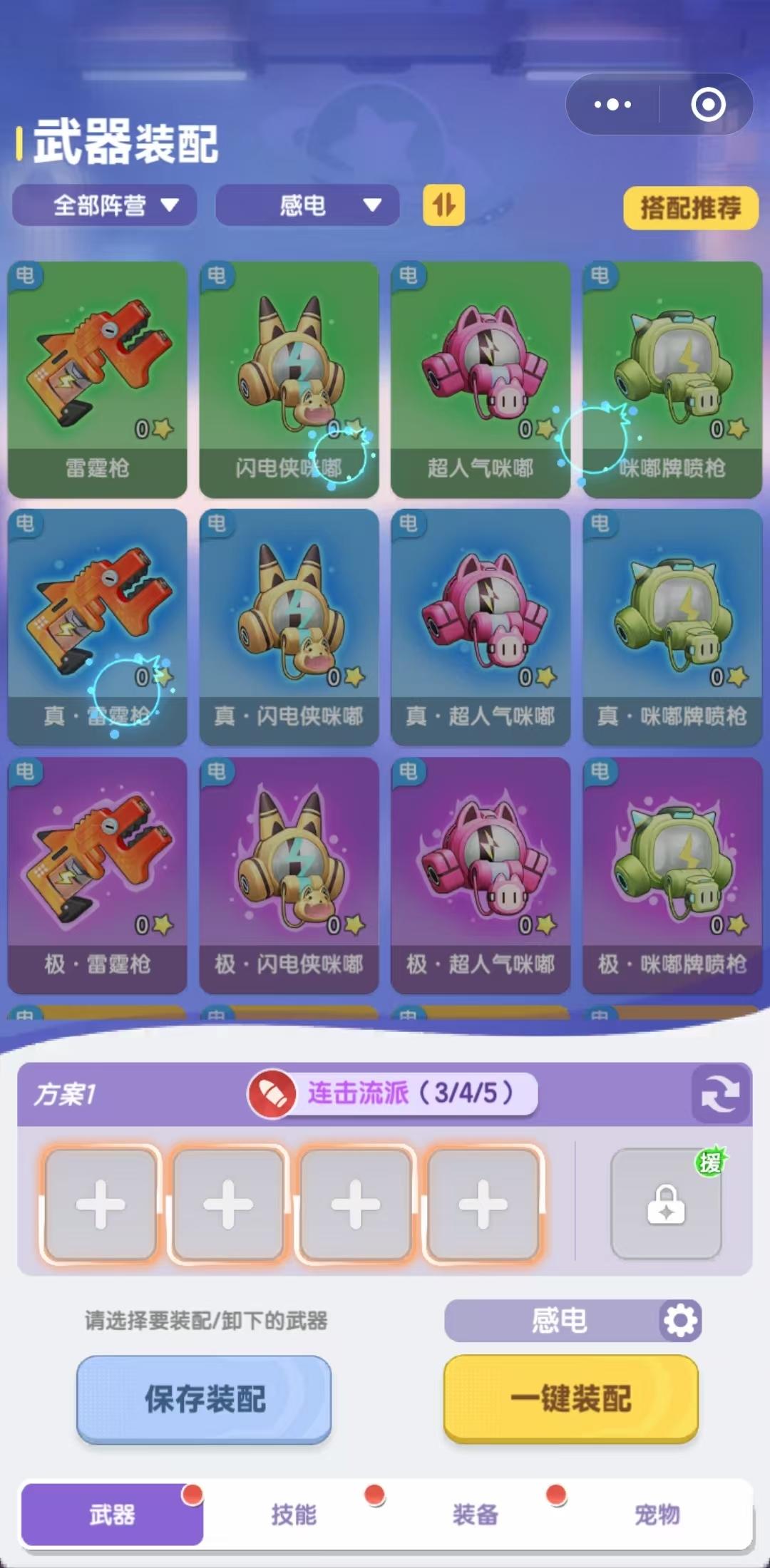 1、感電流派推薦雷霆槍閃電俠咪嘟和超人氣咪嘟,雷霆槍電光子彈最多反射三次且傷害遞增,適合有障礙區(qū)域,掌握角度可命中多目標(biāo),單點(diǎn)輸出也能爆發(fā)高額傷害。