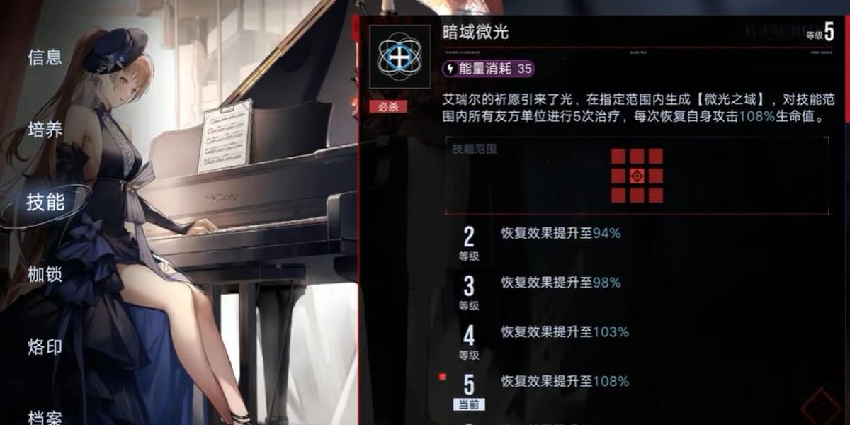 2、必殺暗域微光,消耗32點能量,指定區(qū)域生成持續(xù)4秒的微光之域,域內(nèi)友方連續(xù)5次受治療,每次為自身攻擊力90%,等級提升恢復效果增強,是團隊救命稻草能危急時抬升血線。