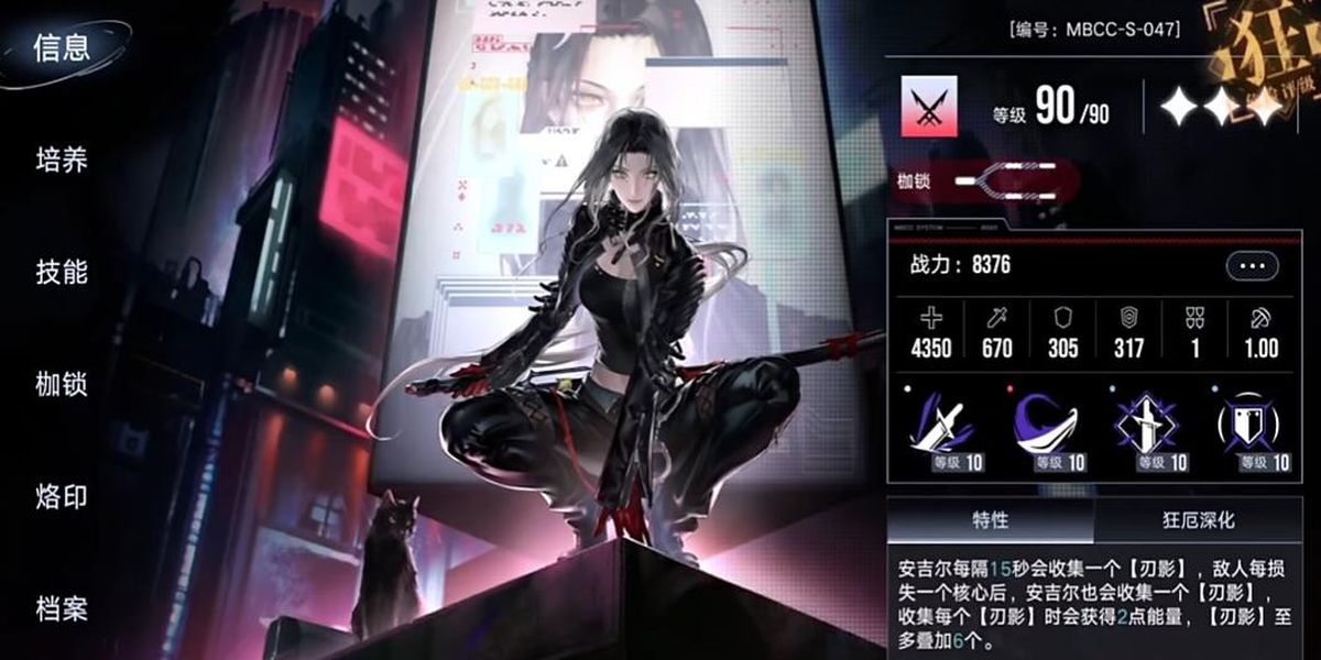 2、特性為每隔15秒收集一個刃影,敵人損失一個核心也能獲取,收集每個得2點能量,刃影至多疊加6個,為技能釋放提供關(guān)鍵的能量和增益積累。