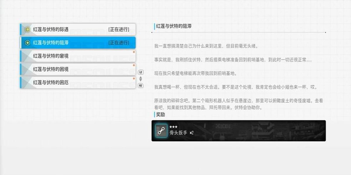 2、與紅蓮對(duì)話后,她會(huì)給出五個(gè)收集任務(wù),分布在廢土和大沙漠,包括擊敗特定怪物、收集道具等,如大沙漠沙塵暴區(qū)域擊敗沙蟲,廢土廢棄工廠收集機(jī)械零件,需逐一完成。