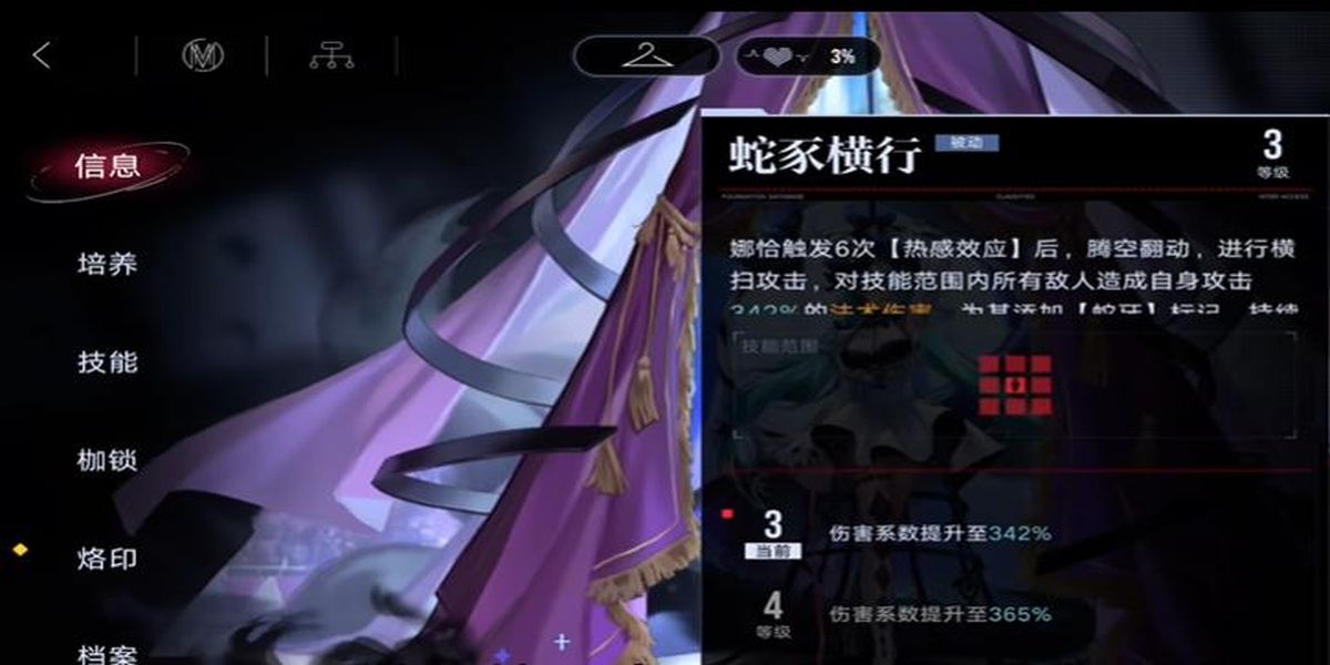 3、被動(dòng)熱感效應(yīng)在自身地格無敵人時(shí)觸發(fā),普攻范圍擴(kuò)至周圍九宮地格,傷害提升30%,能增強(qiáng)普攻的覆蓋范圍與威力,讓娜恰在特定場(chǎng)景下輸出更高效。