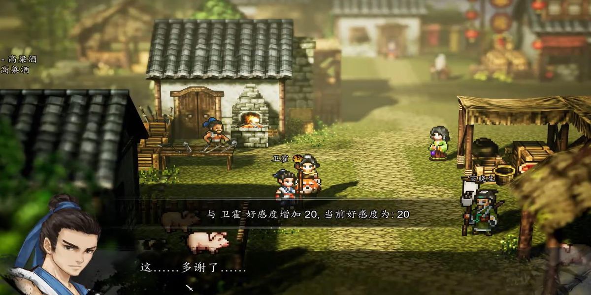 4、把藥材給江吟風(fēng)后去客棧打高粱酒,酒被衛(wèi)霍買完,送禮到20好感度切磋勝利得酒和道具,可邀衛(wèi)霍入隊(duì)。