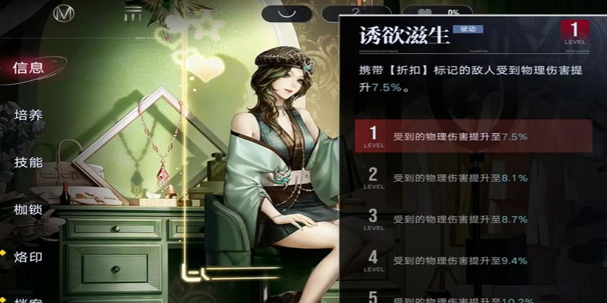 4、被動(dòng)2誘欲滋生使攜帶折扣標(biāo)記的敵人受到的物理傷害提升,這一被動(dòng)能增強(qiáng)對(duì)標(biāo)記敵人的輸出能力,與其他技能配合可發(fā)揮更大戰(zhàn)力。