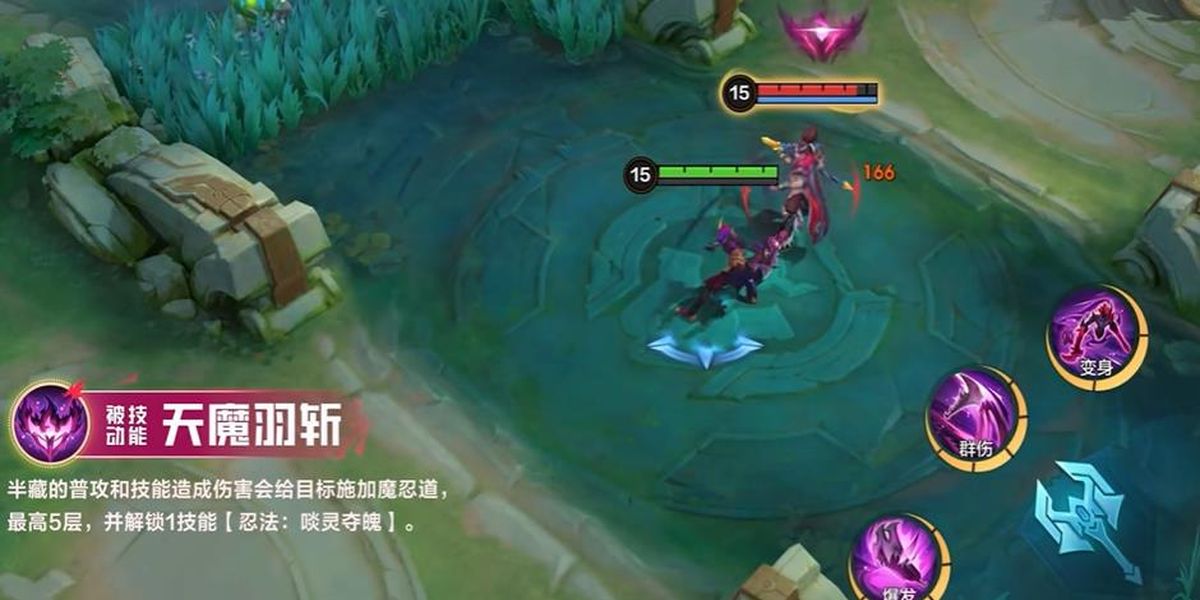 1、被動(dòng)天魔羽斬,周圍單位死亡時(shí),半藏獲取天魔之力,非英雄單位死亡提供2點(diǎn),英雄單位死亡提供20點(diǎn),可強(qiáng)化其他技能,是他在團(tuán)戰(zhàn)中提升實(shí)力的關(guān)鍵。