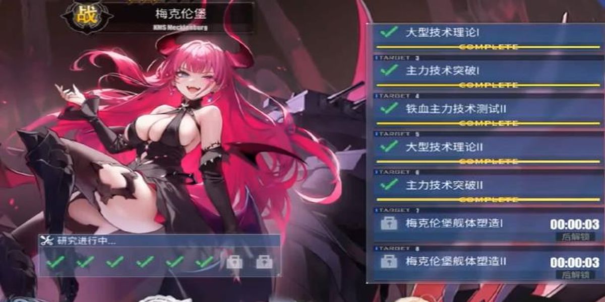 2、獲取需鐵血陣營科技點(diǎn)達(dá)一定數(shù)值,通過后排出擊獲取經(jīng)驗(yàn)、完成系列任務(wù)解鎖,最快一周下水,之后需完成科研八期委托任務(wù)積累藍(lán)圖培養(yǎng)至完整狀態(tài)。