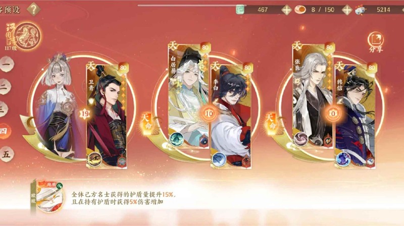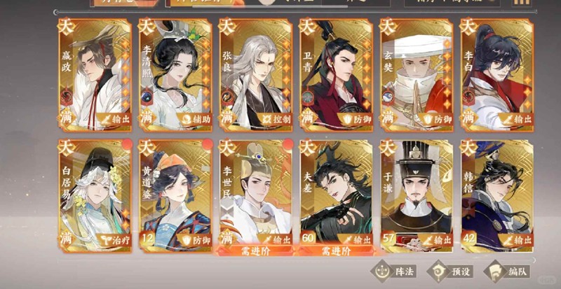 3、新手陣容可成雙白、張良、上述三個(gè)之一、大周后,后續(xù)出天命后換下大周后,后續(xù)還能發(fā)展第二隊(duì),如勾踐抽夫差后以張良、夫差、勾踐為基礎(chǔ)組建。