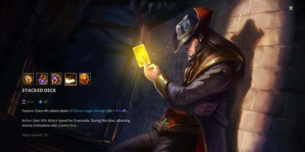4、E技能卡牌騙術(shù)被動提升攻擊速度,每四次普通攻擊造成額外魔法傷害,增強(qiáng)持續(xù)輸出能力,配合W技能可打出不錯爆發(fā),提升對戰(zhàn)中的傷害輸出。