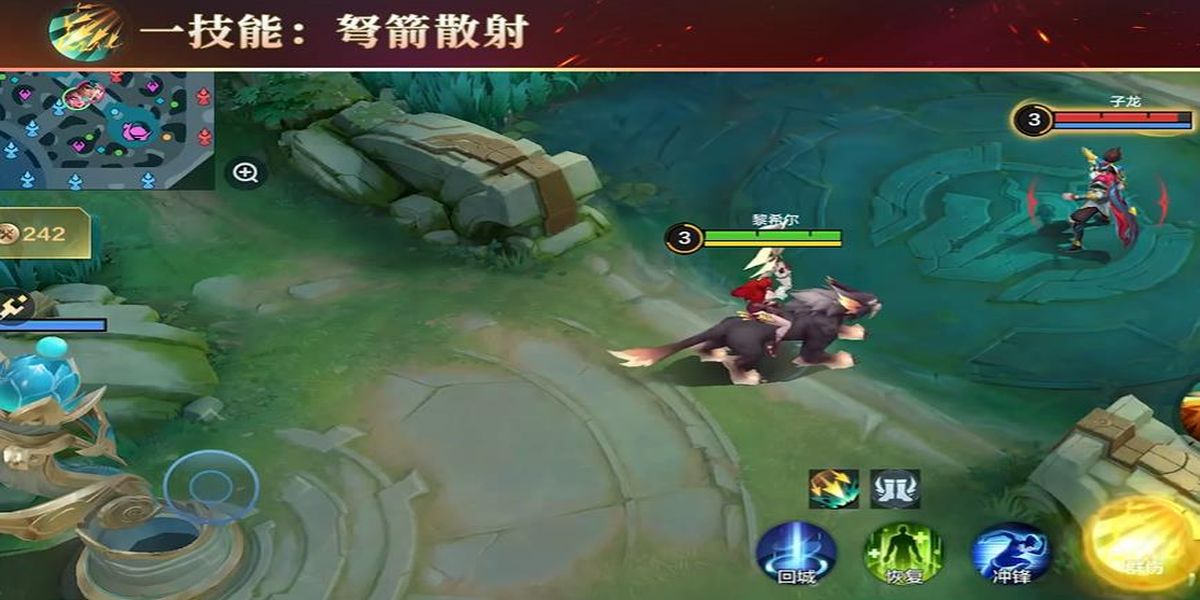 2、一技能弩箭散射,可向指定方向瞬間位移,后短時(shí)間大幅提攻速,能追殘血、巧避刺客,借攻速提升快速打出高額爆發(fā)傷害。