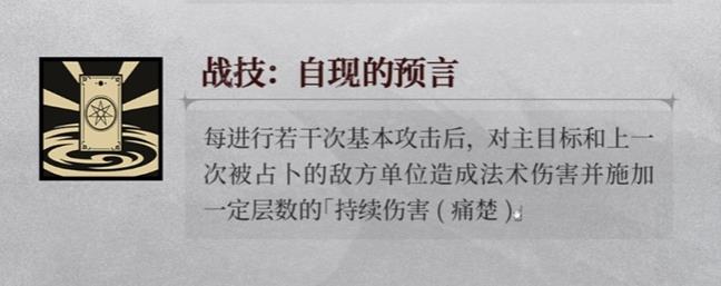 2、其戰(zhàn)技自現(xiàn)的預(yù)言每4次普攻釋放,對主目標(biāo)和上一次被占卜敵方造成300%法術(shù)傷害,還能施加2層痛楚,痛楚每層每2秒造成30%法術(shù)傷害,上限10層。