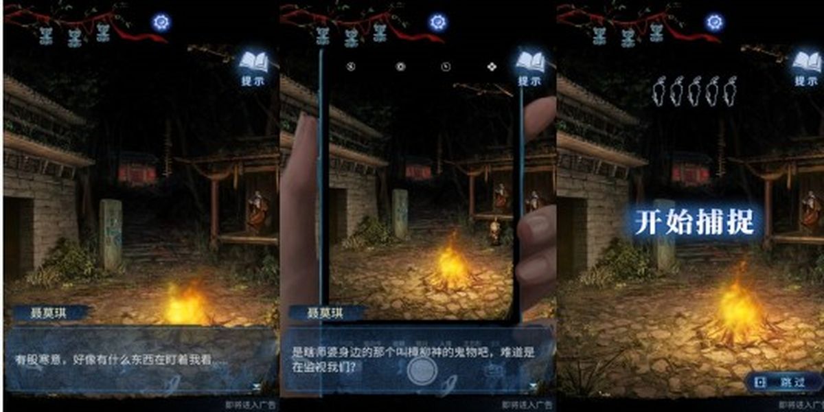 1、完成古琴謎題后離開房間,回到篝火區(qū)域,用手機照篝火可見樟柳神,觸發(fā)捕捉小游戲,每次捕捉前需關掉手機再重拍,否則不出現(xiàn),捕獲5次得樟柳神。