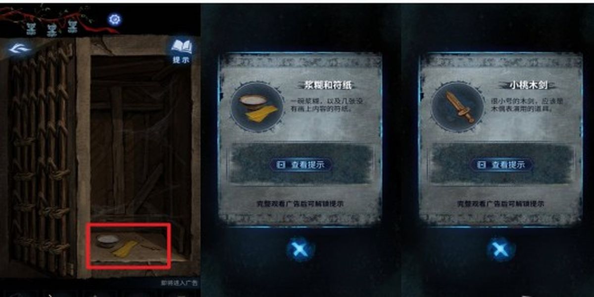 4、拿新線索進入棄煞牢,點右側桌子上的書翻到第三頁得線索,按數字代表抱拳手數從左至右622543開柜子,取漿糊符紙和小桃木劍完成流程。